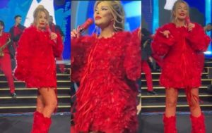 Onlayn.media xəbər verir ki, Pop kraliça qırmızı geyimdə obyektiv qarşısına keçib.
